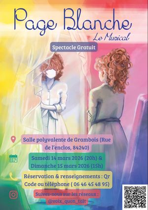 Les 14 et 15 mars 2026 : Comédie musicale originale : Page Blanche, le Musical