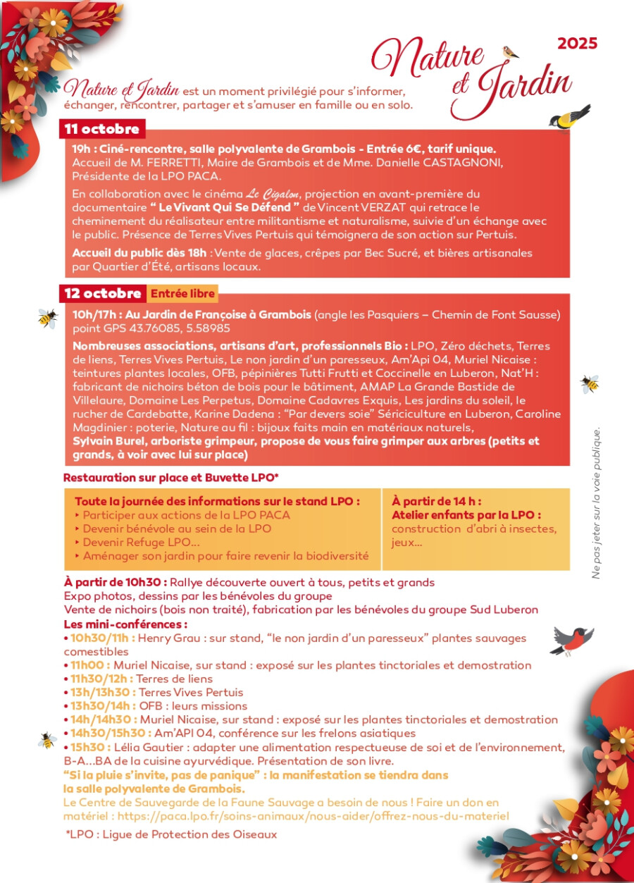 Samedi 11 et dimanche 12 octobre la LPO PACA organise ses journées "Nature et jardins"
