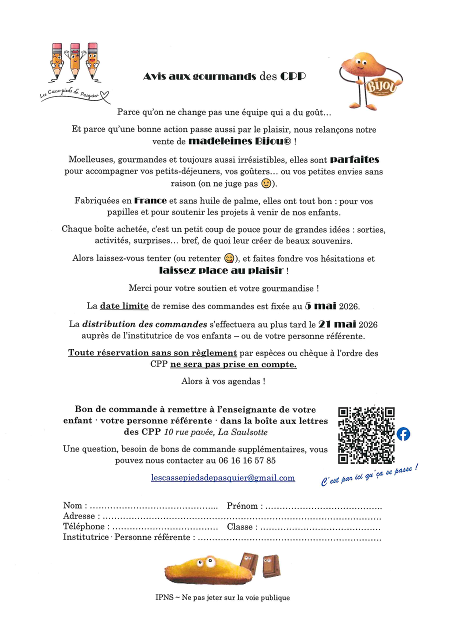 Voici une communication de l'association des Parents d'élèves Les Casse pieds de Pasquier
