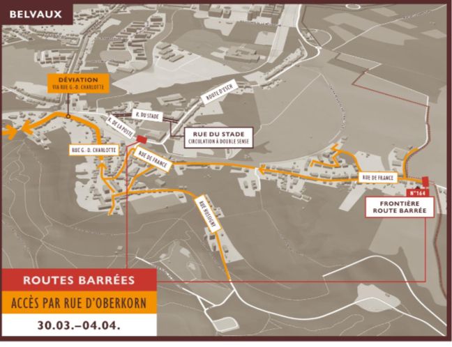 Les déviations sont prévues dans BELVAUX pour le trafic local
