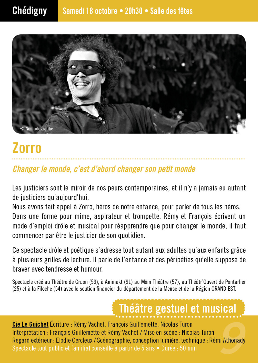 NACEL pose ses valises à Chédigny le samedi 18 octobre à 20h30 en accueillant le spectacle Zorro de la compagnie Le Guichet.