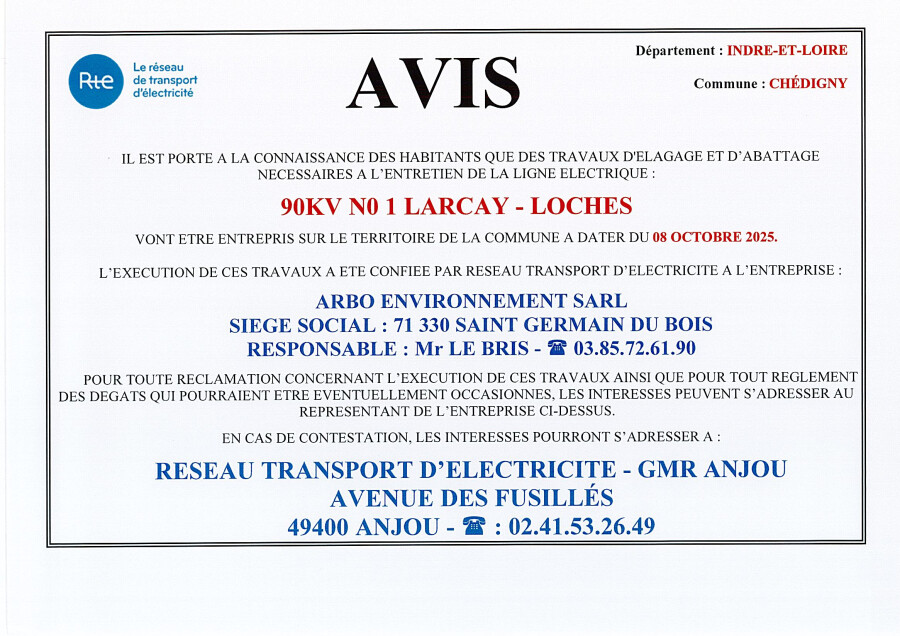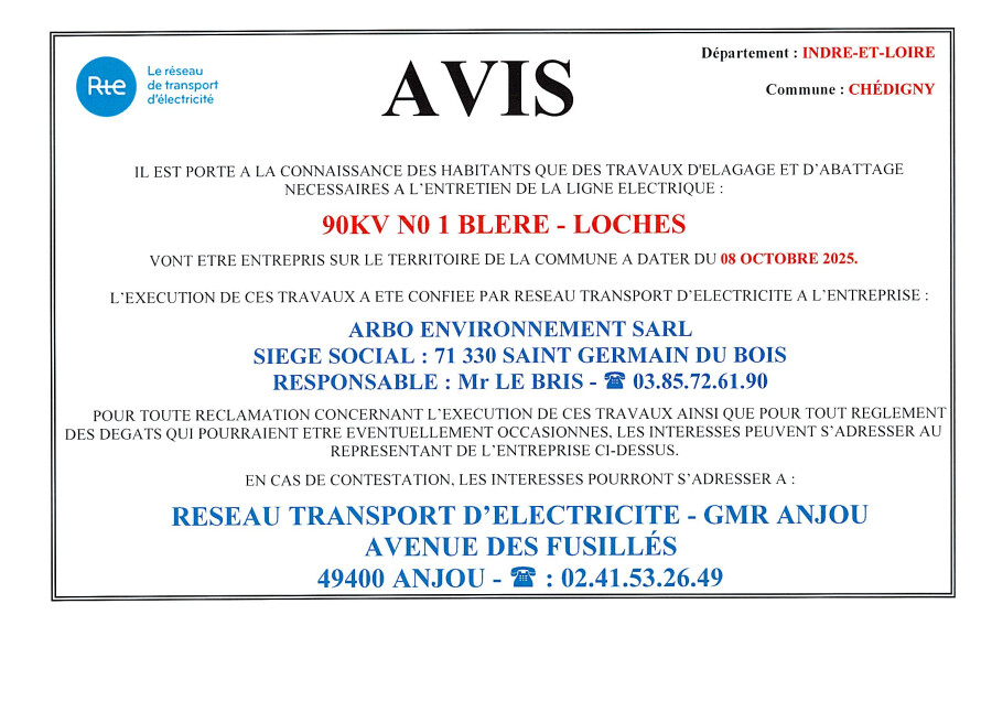 Du 22/09/2025 au 13/10/2025, Loches Sud Touraine est autorisée à effectuer des travaux de création d'un branchement neuf assainissement au 43, rue du Lavoir 37310 Chédigny.