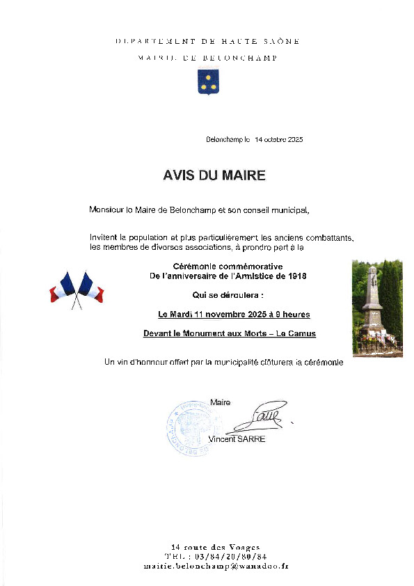 Contacter la mairie de Belonchamp