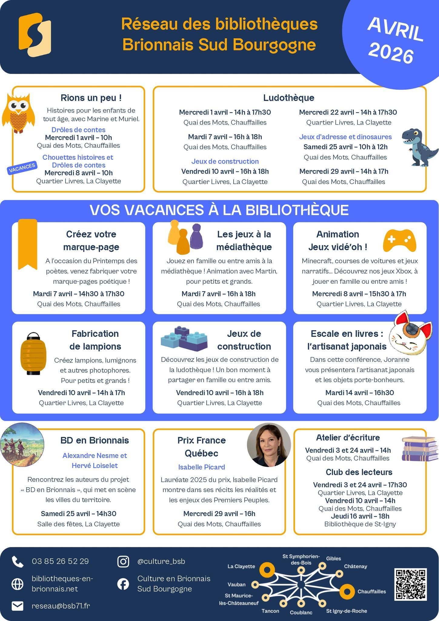 Programme complet en bibliothèque ou sur : www.bibliotheques-en-brionnais.net