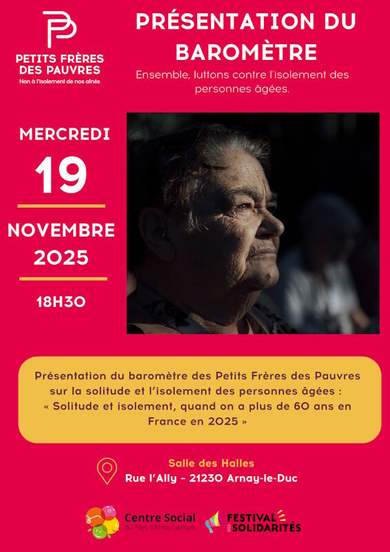 À l’occasion du Festisol, les Petits Frères des Pauvres d’Arnay-le-Duc présenteront le nouveau baromètre de l’association qui dresse un constat alarmant sur l’isolement et la solitude des personnes âgées.