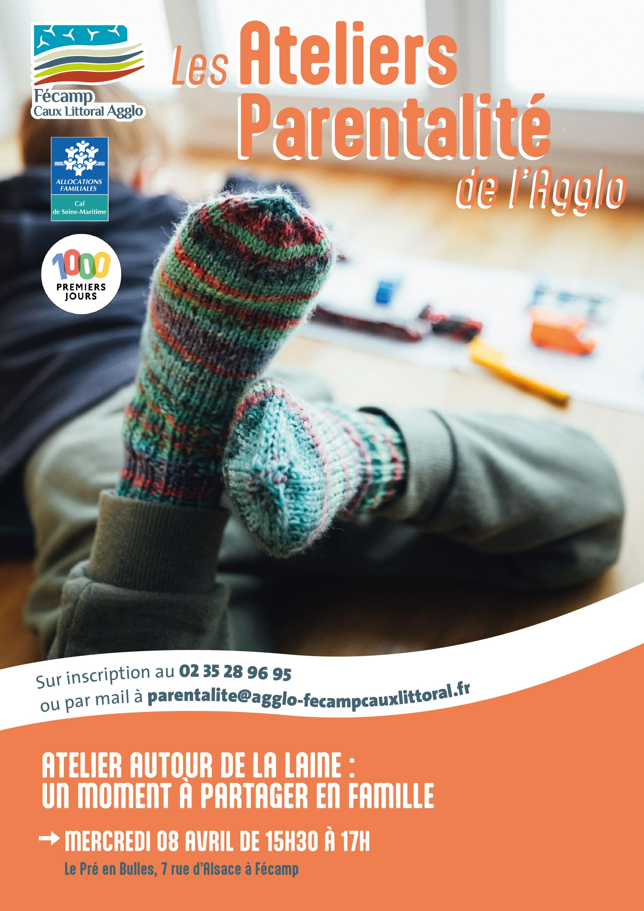- Atelier du mercredi 8 avril de 15h30 à 17h00 : « Atelier autour de la laine : un moment à partager en famille » - Le Pré en Bulles, 7 rue d’Alsace – Fécamp