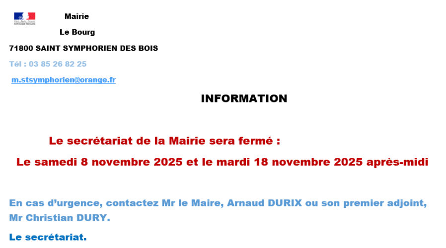 Village dynamique du Charolais-Brionnais, la commune de Saint Symphorien des Bois propose à la location à compter du 1er décembre un logement de 70 m2, très lumineux comprenant deux chambres, un salon salle à manger, une cuisine, une salle d’eau et toilette séparé. Le village propose à proximité de nombreux services : école, ramassage scolaire jusqu’au lycée, commerce Multi-Services et dès 2026 une Micro-Crèche.