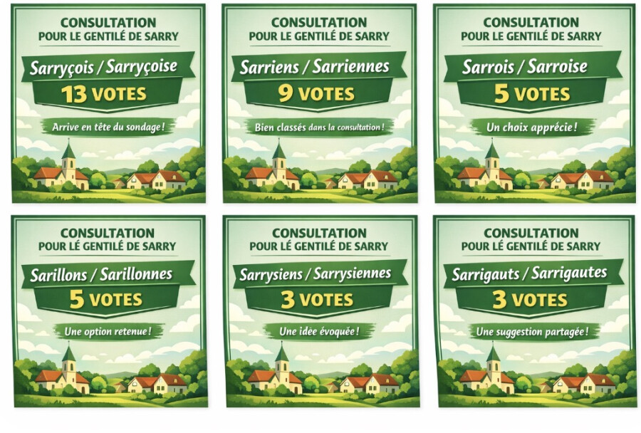Un bilan des réalisations de l’année écoulée a été présenté : rénovation de la salle des fêtes, travaux de voirie, plantations d’arbres fruitiers, installation prochaine de jeux pour enfants, amélioration de la gestion du cimetière, valorisation touristique autour de l’église et intégration de Sarry dans le futur parcours des chemins de Compostelle.