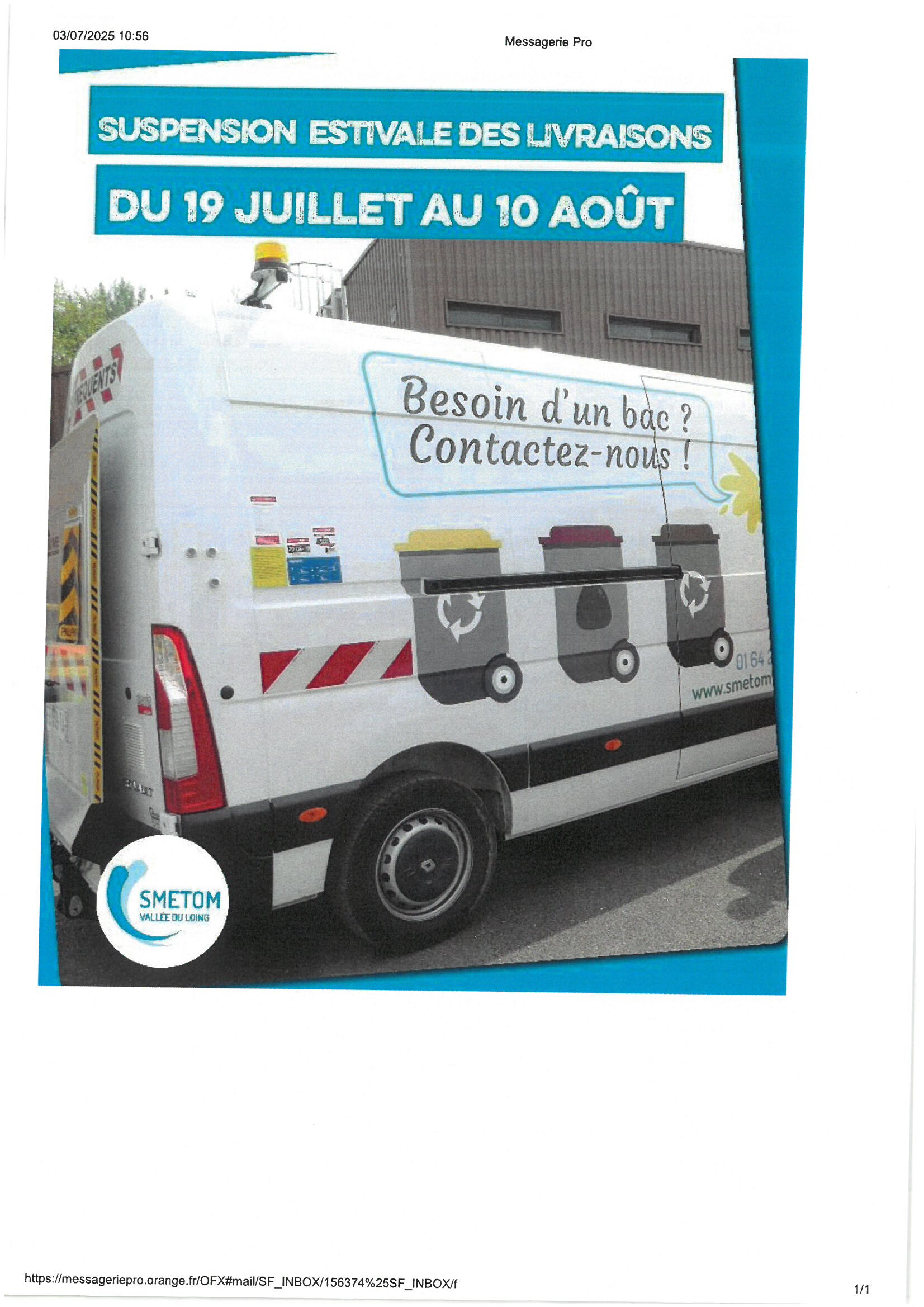 Contactez le SMETOM de la Vallée du Loing au 01.64.29.35.63 pour une livraison à domicile ! 🚚