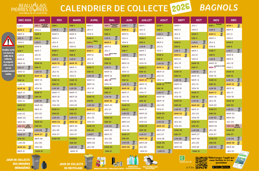 A compter du 1er janvier 2026, la commune de Bagnols ne sera plus collectée pour les ordures ménagères le jeudi mais le lundi.