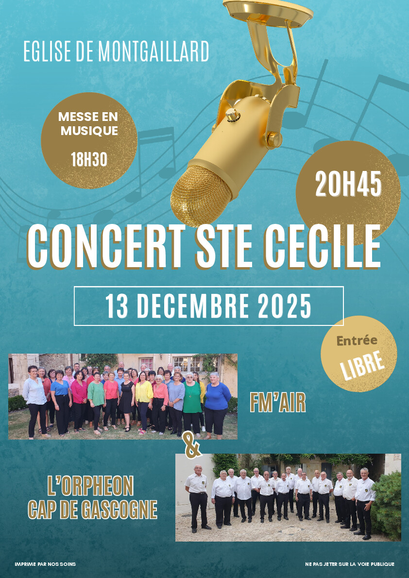 Le concert de la Sainte Cécile se tiendra le samedi 13 décembre 2025 à l'église