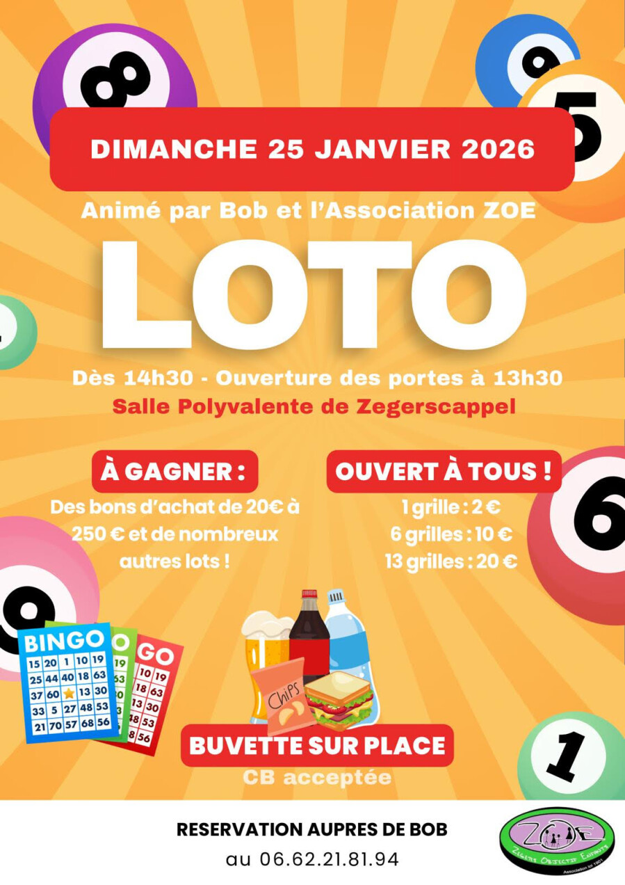 Rejoignez-nous pour un grand loto animé par Bob et l’association Zegers Objectif Enfants!