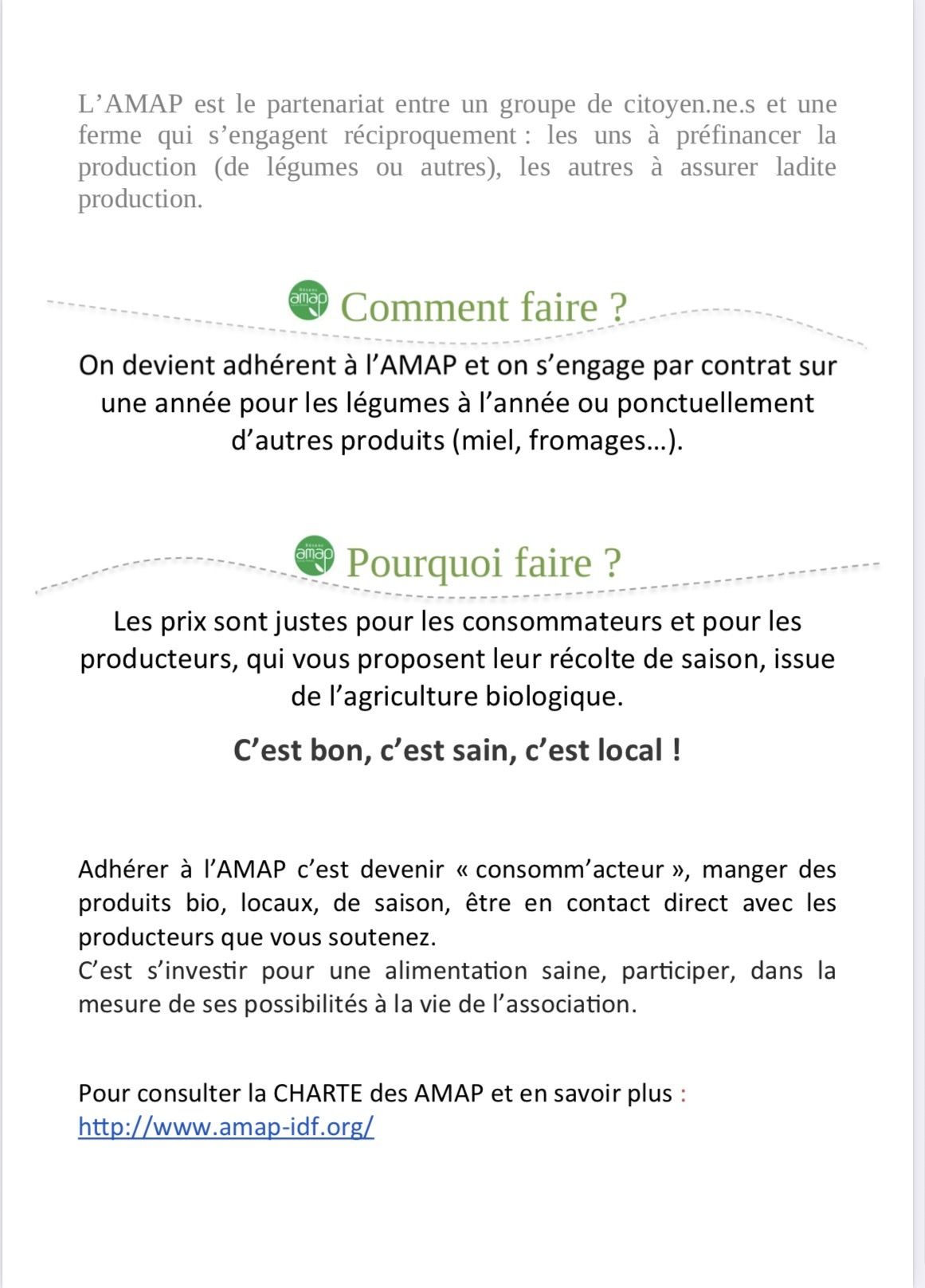 font partie de l’AMAP (Association pour le Maintien d’une Agriculture Paysanne) vous permettant de consommer des produits locaux,
