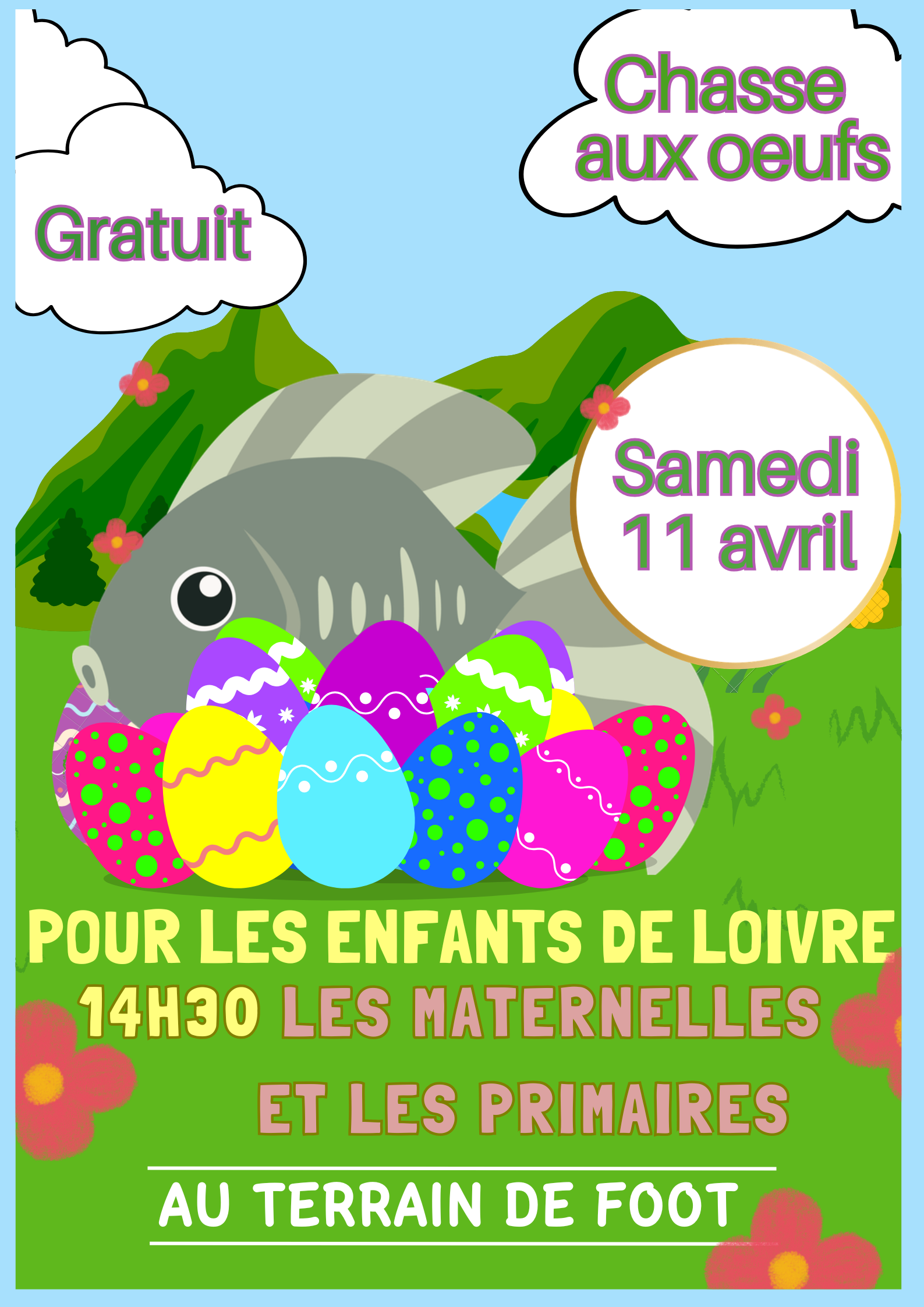 En raison des intempéries, la chasse aux œufs initialement prévue le 28 mars est reportée au 11 avril.