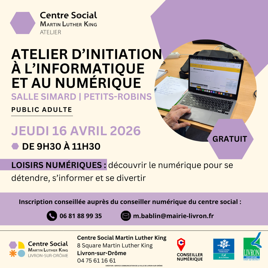Inscription auprès du Centre social : 04 75 61 16 61