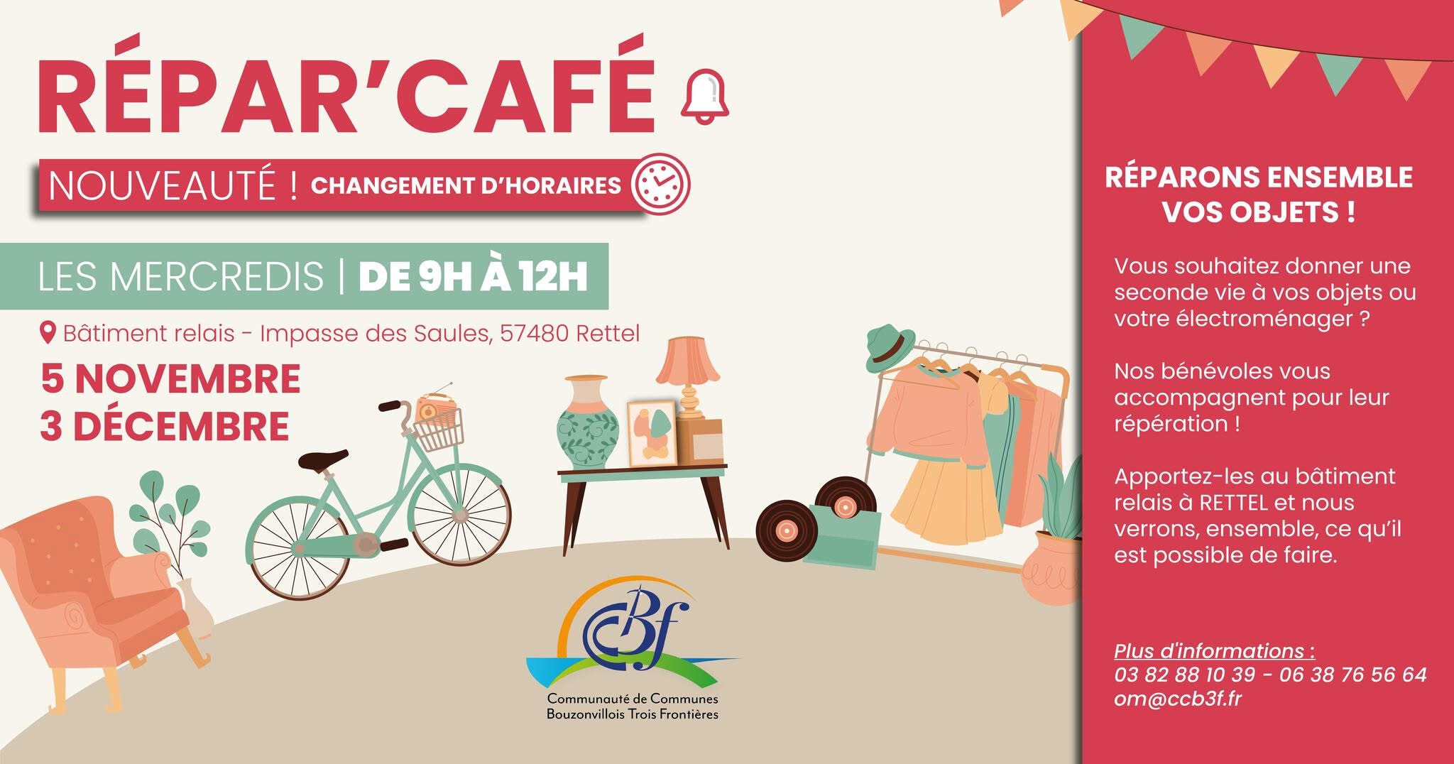 ⚠️ Les Repar'Café ont désormais lieu de 9h à 12h les mêmes jours que la Troc'Ante !