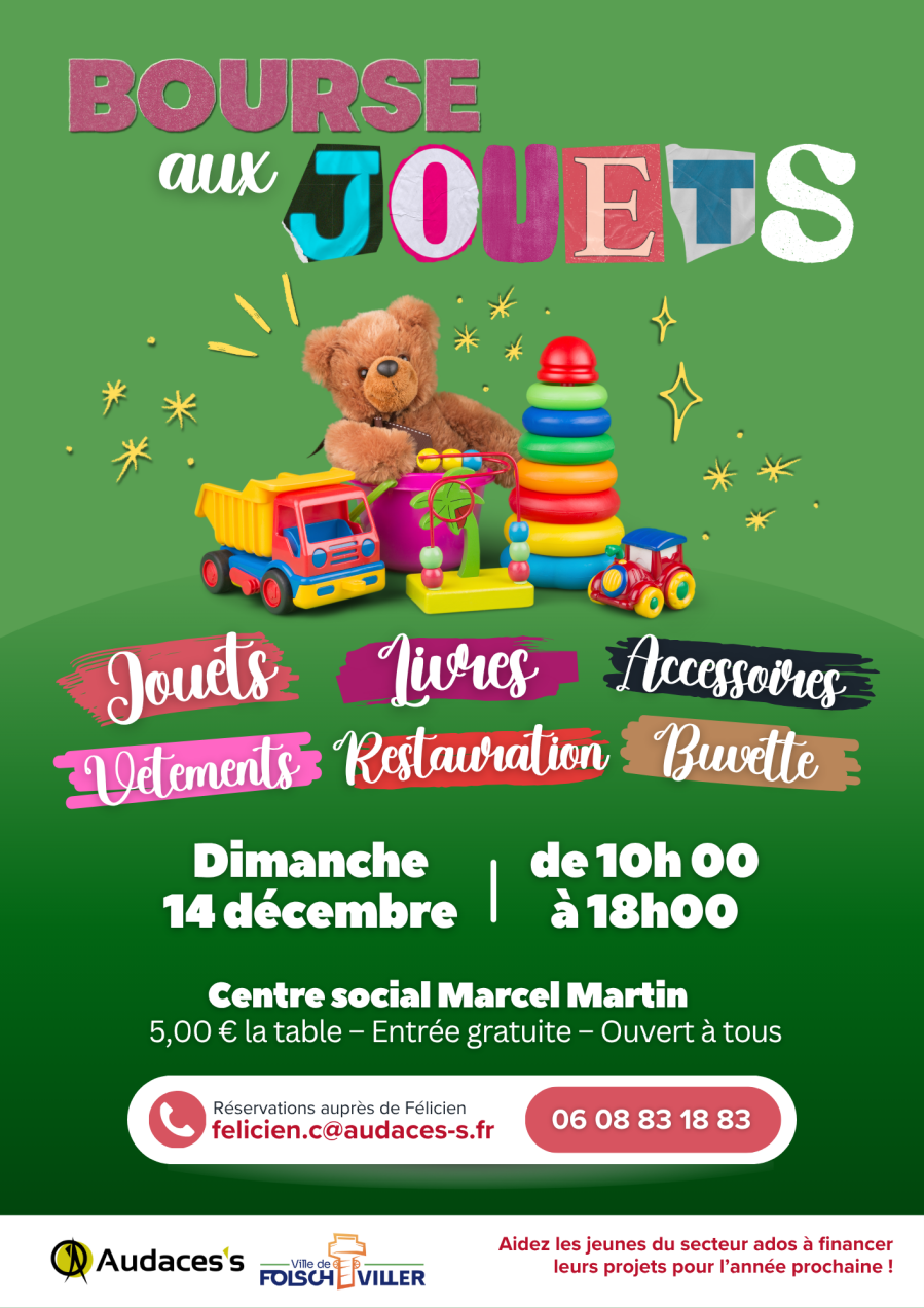 Envie de faire plaisir sans exploser le budget, de donner une seconde vie aux jouets et de soutenir les jeunes du secteur ? On se retrouve dimanche 14 décembre de 10h à 18h au Centre social Marcel Martin pour une journée 100% famille, 100% bonnes affaires ! 🙌