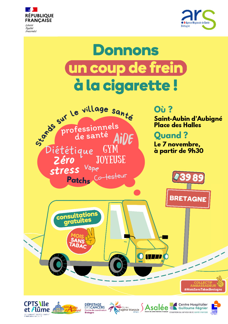 Dans le cadre du mois sans tabac, une camionnette itinérante s'arrêtera dans les communes suivantes le 7 novembre prochain :