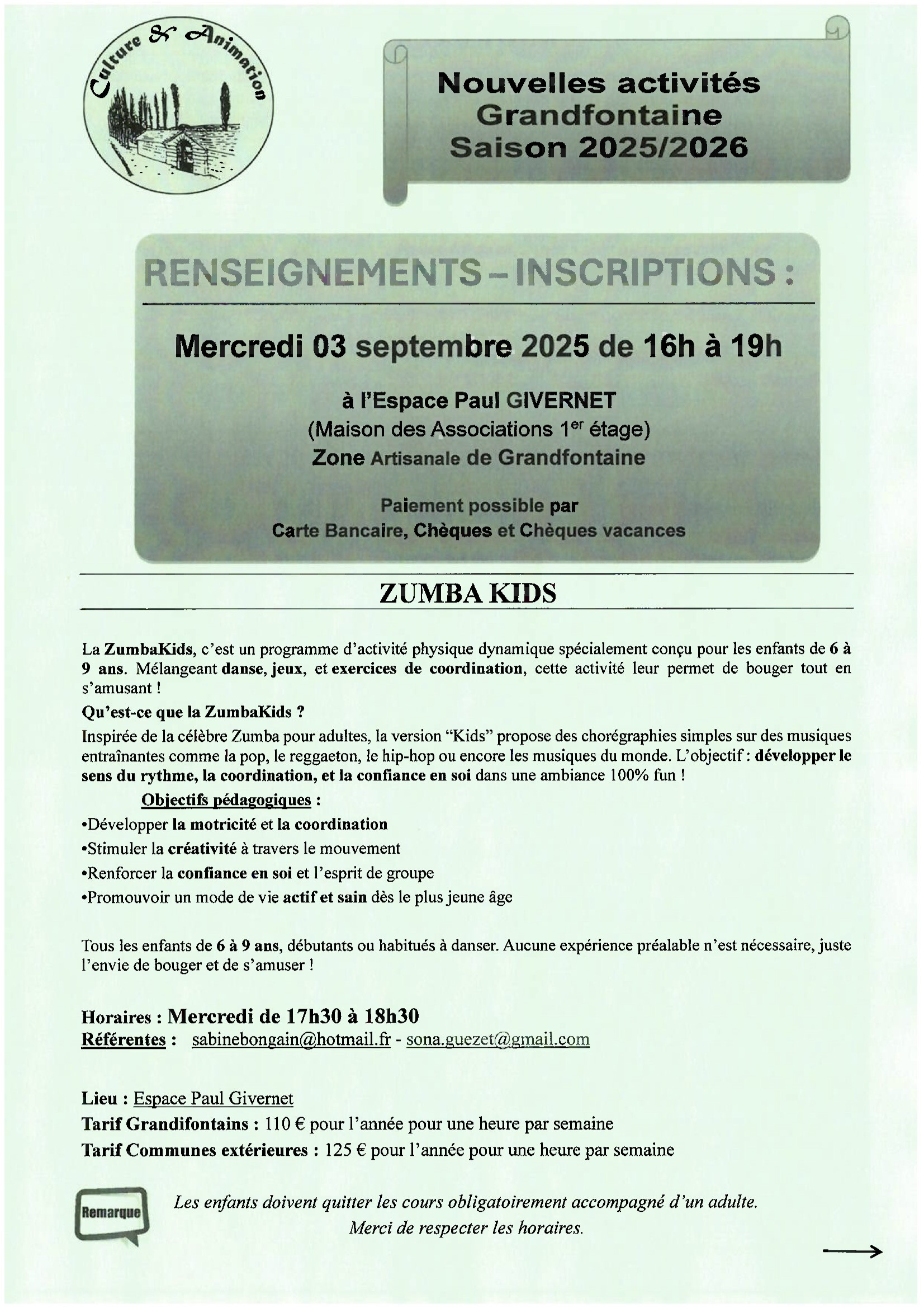 Pour tout renseignement, contacter la mairie au 03 81 58 56 57