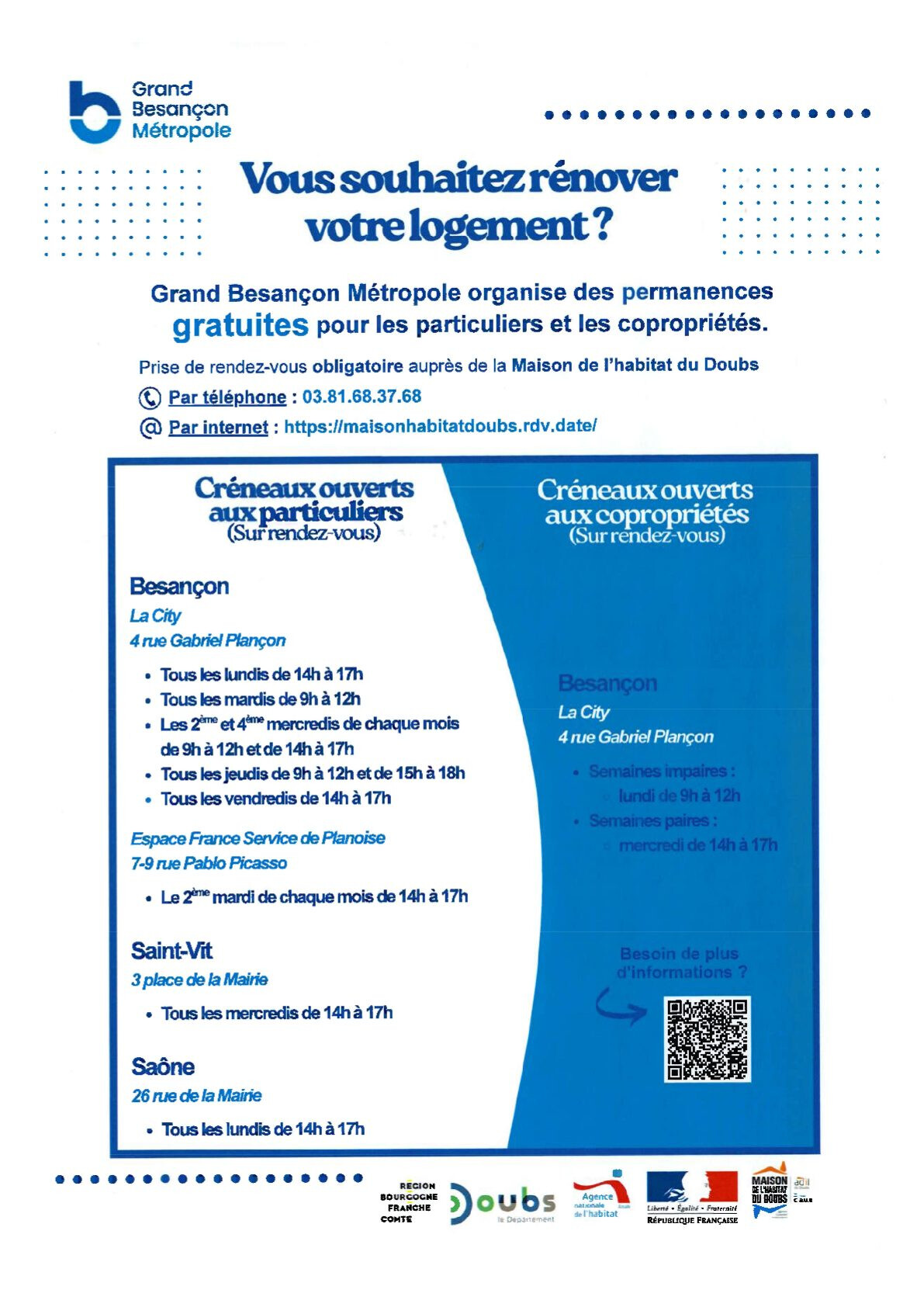 > Permanence le mardi de 14h à 17h à Besançon (18 Boulevard Charles de Gaulle)
