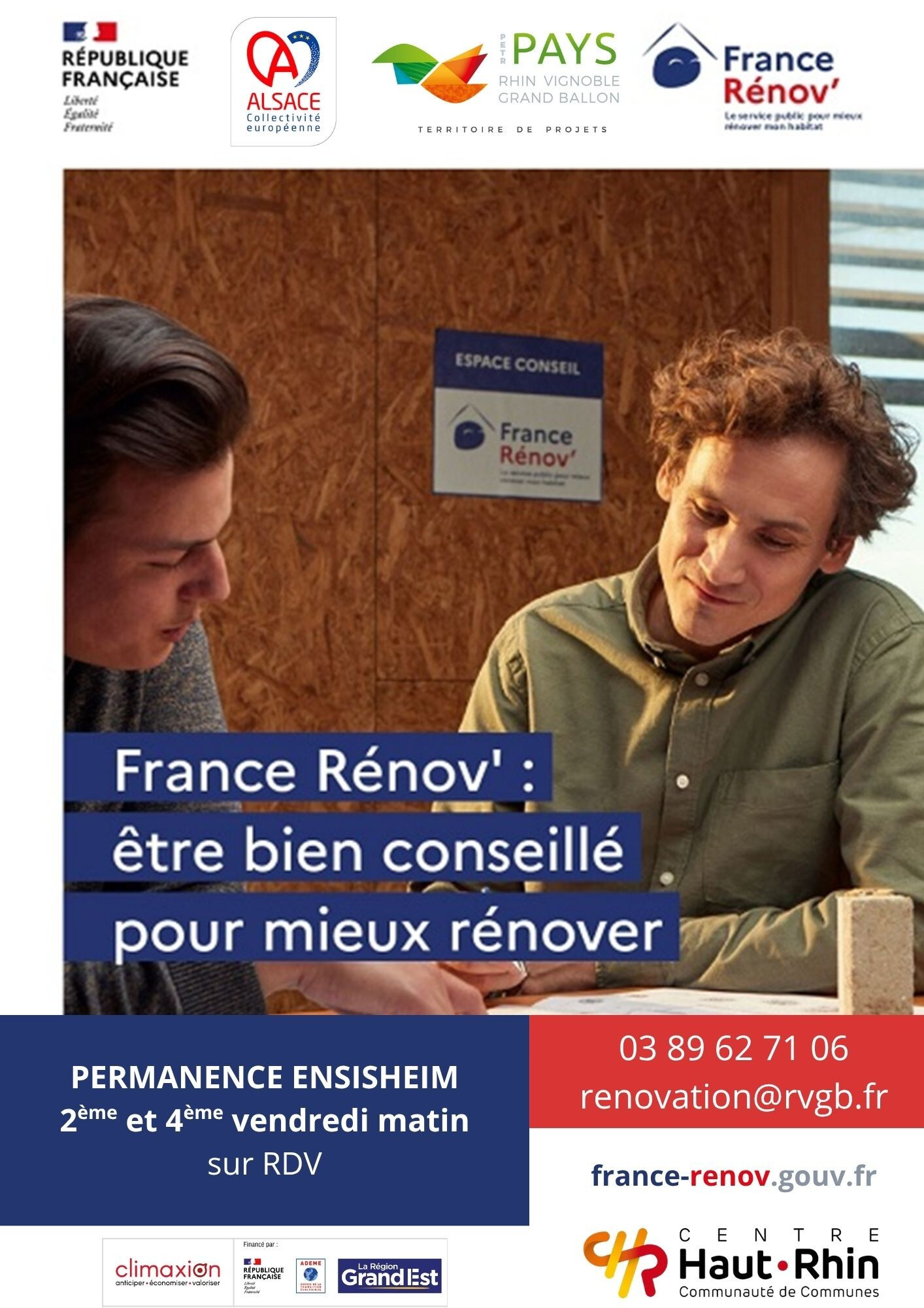 Le Conseiller France Rénov du PETR du Pays Rhin Vignoble Grand Ballon est désormais disponible sur RDV :