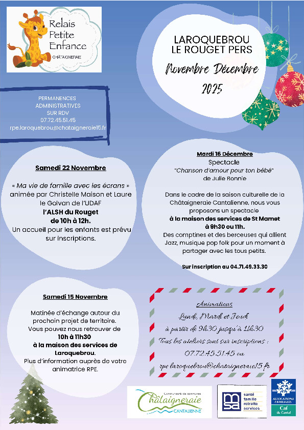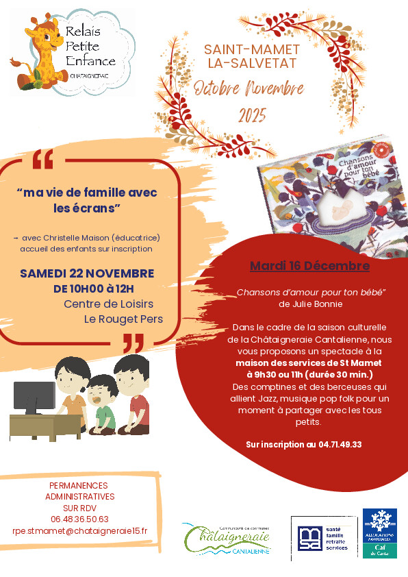 Pour le pôle de Saint-Mamet-la-Salvetat, les ateliers seront réalisés le :