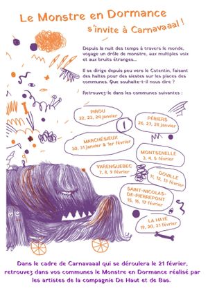 Découvrez également les dates de passage du Monstre en dormance dans les communes de Pirou, Périers, Marchésieux, Montsenelle, Varenguebec, Doville, Saint-Nicolas-de-Pierrepont et La Haye.