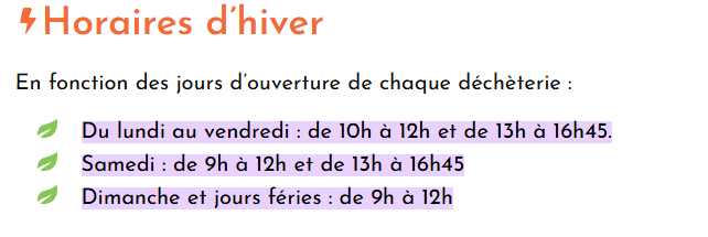 Les déchèteries du réseau SIREDOM passent à l'heure d'hiver à compter du 15 octobre 2025.