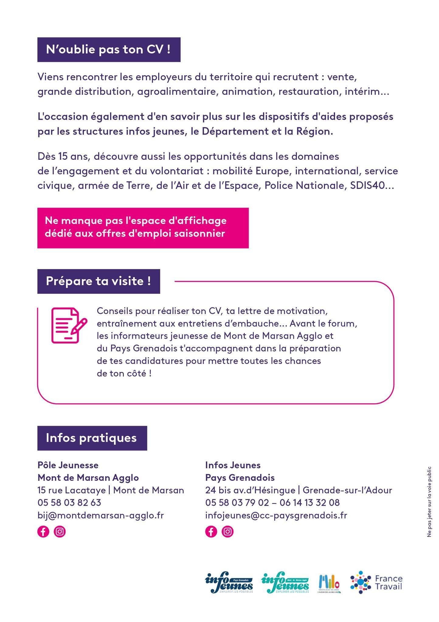 ✅ Ne manque pas le Forum Jobs d’été & Engagement organisé par le Pôle Jeunesse Mont de Marsan Agglo et le service #InfoJeunes du #PaysGrenadois !