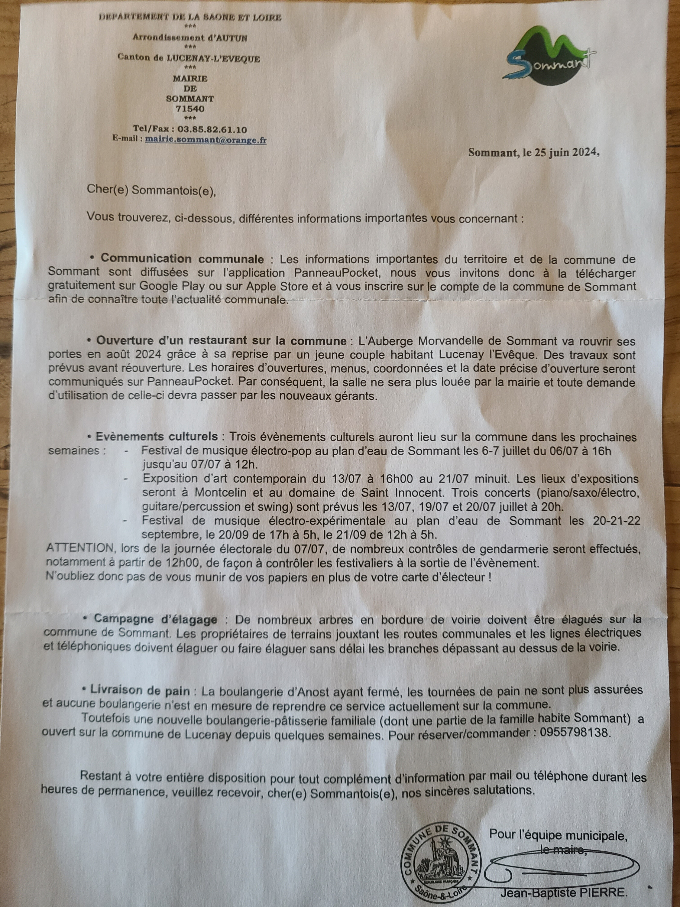 Vous trouverez ci-dessous le courrier envoyé par la commune aux locataires et propriétaires de la commune.
