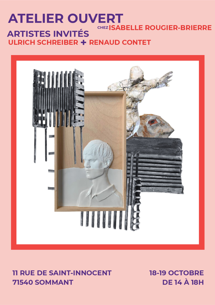 Le week-end du 18-19 octobre, l'artiste Isabelle ROUGIER-BRIERRE, ouvre son atelier, accompagnée de Messieurs Ulrich Schreiber et Renaud Contet, pour vous présenter leurs dernières œuvres.