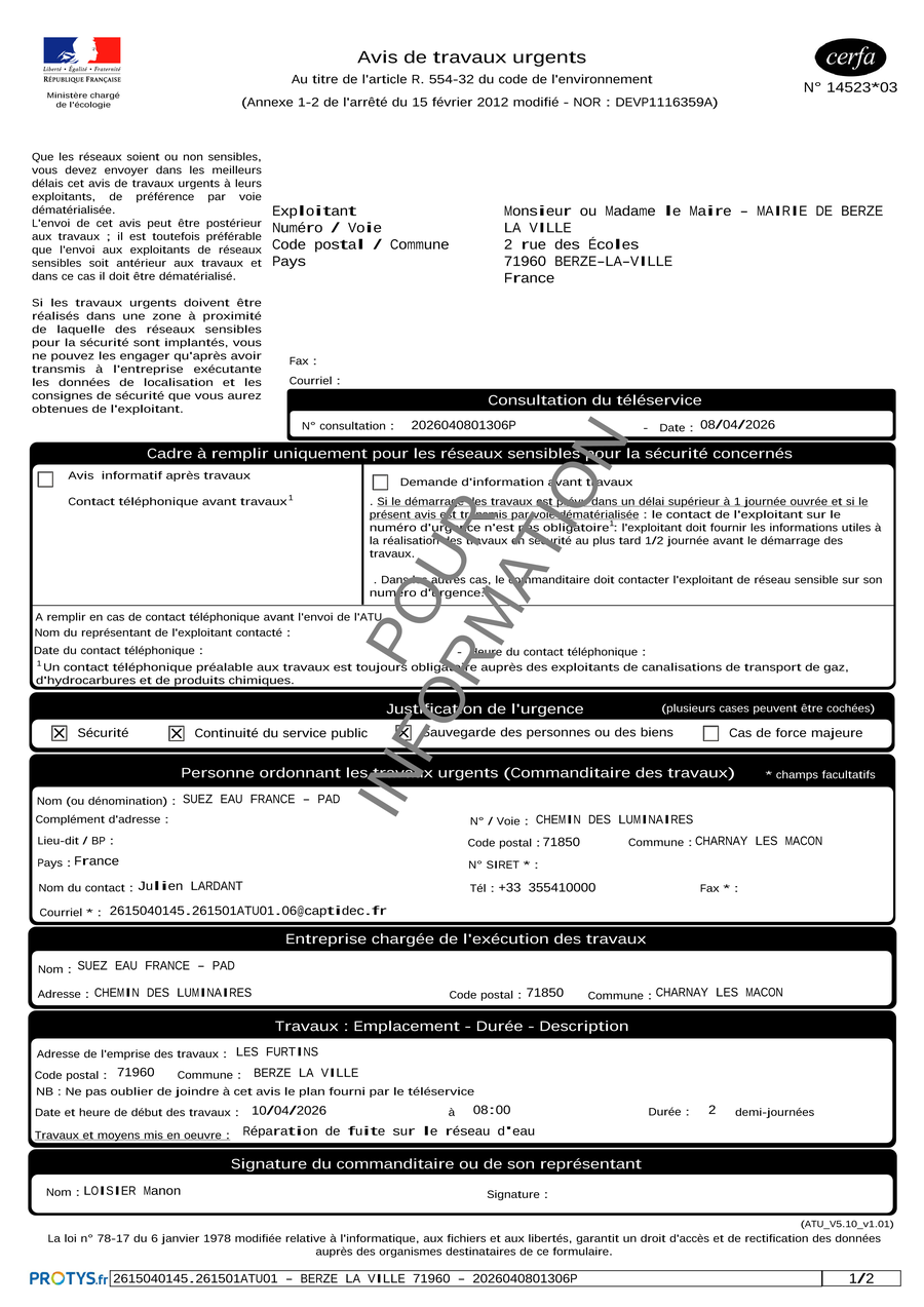 Ces travaux, réalisés par SUEZ, peuvent entraîner des perturbations ponctuelles (circulation et/ou eau).