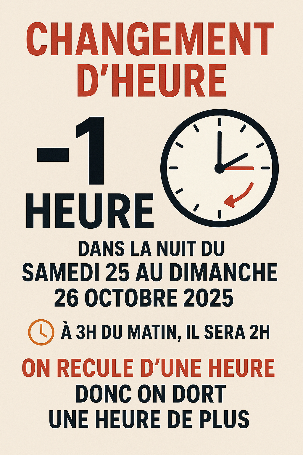 Le passage à l'heure d'hiver se déroulera dans la nuit du