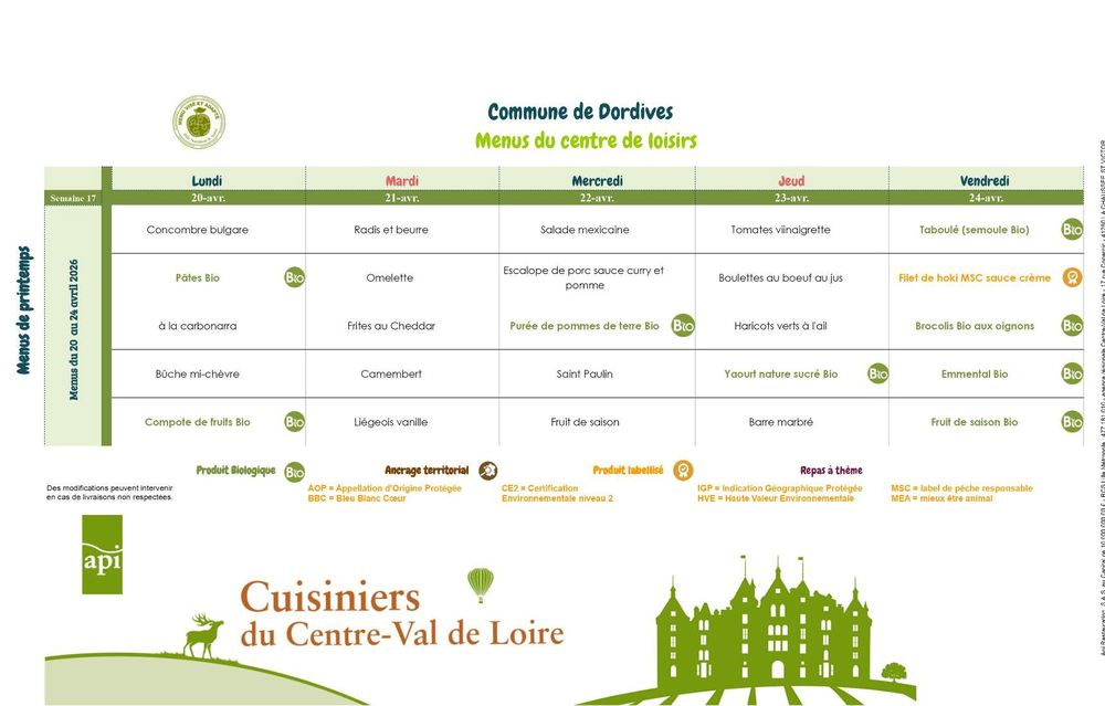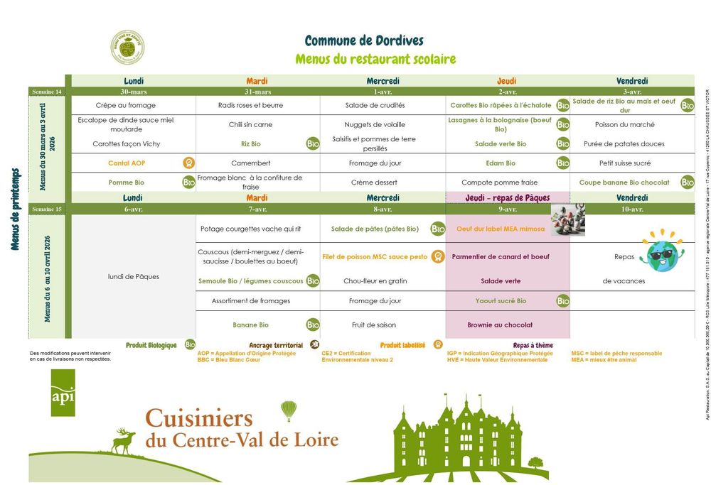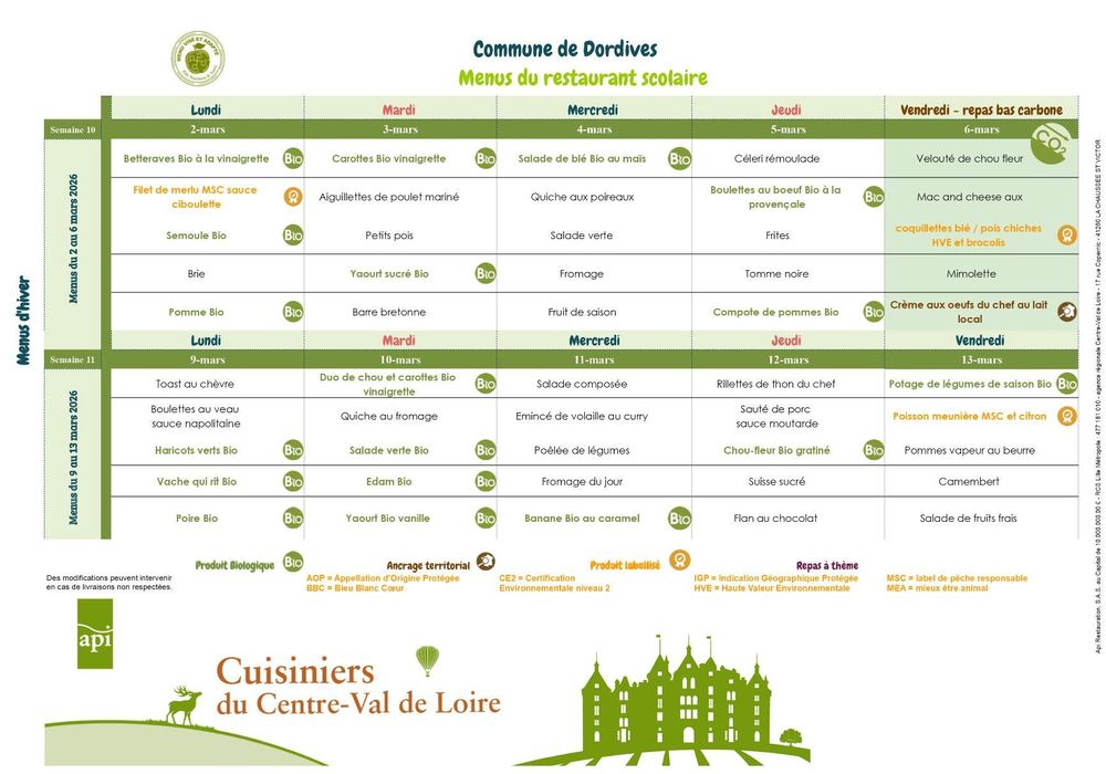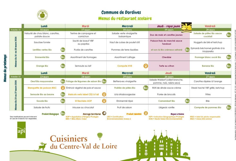 Prochain repas au Restaurant scolaire :