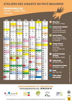 L’accès aux ateliers est gratuit, sur inscription à effectuer auprès de l’animatrice du Contrat Local de Santé (sante@paysbeaunois.org – 03 80 24 56 10).