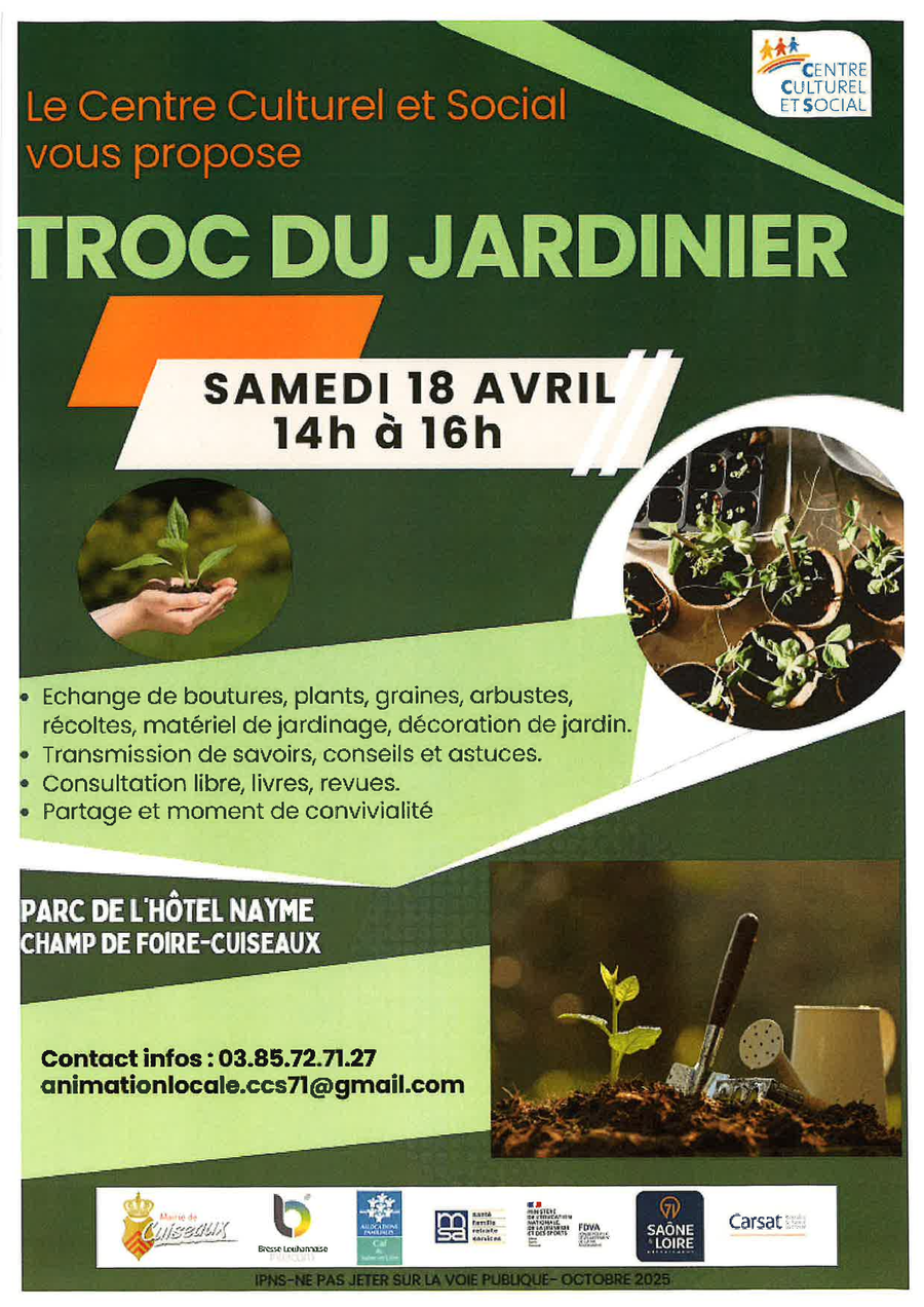 ☘️ Comme chaque année, inscrivez-vous pour nous permettre de préparer au mieux la journée : Débuter son compost, et activités ludiques pour les plus jeunes.