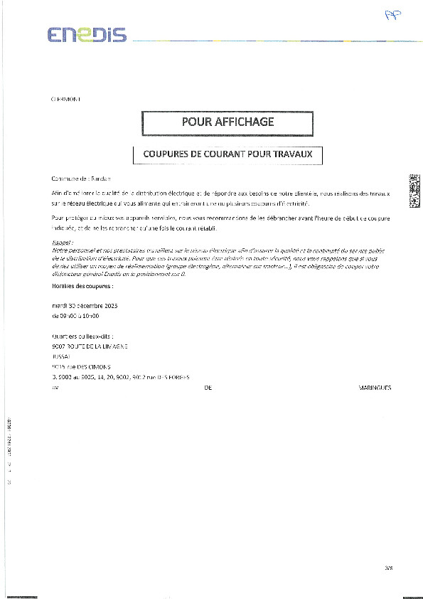 l'éclairage public pourra être maintenu tout ou partie de la nuit, du 22 décembre 2025 au 2 janvier 2026.