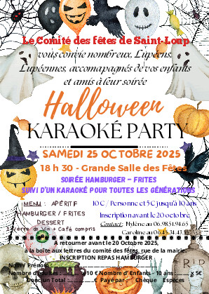Ce vendredi 17 octobre à 21h00 dans la grande salle des fêtes de Saint-Loup. Entrée libre et gratuite. Buvette par le Comité des Fêtes.