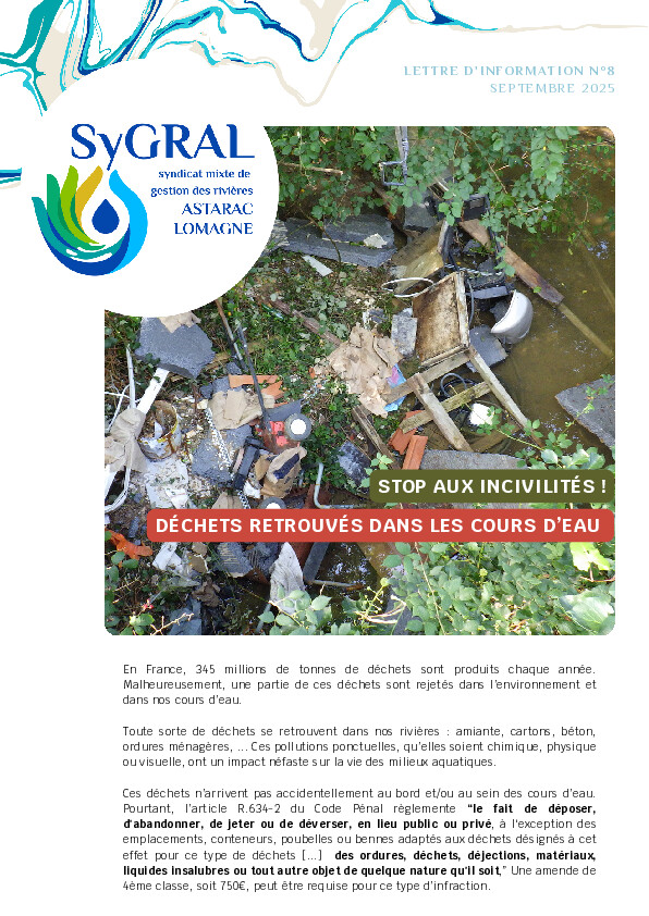 Le SYGRAL est interlocuteur pour une gestion durable des milieux aquatiques et humides présents sur les bassins versants de la Gimone, de l’Arrats et d’autres affluents rive gauche de la Garonne Tarn-et-garonnaise.