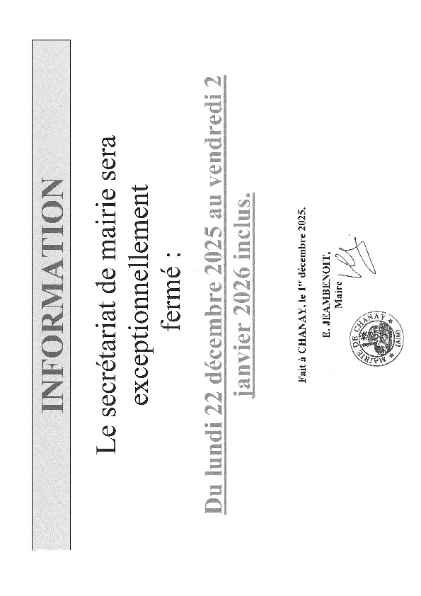 Madame le Maire et l'ensemble du Conseil Municipal vous souhaitent de Bonnes Fêtes de fin d'année.