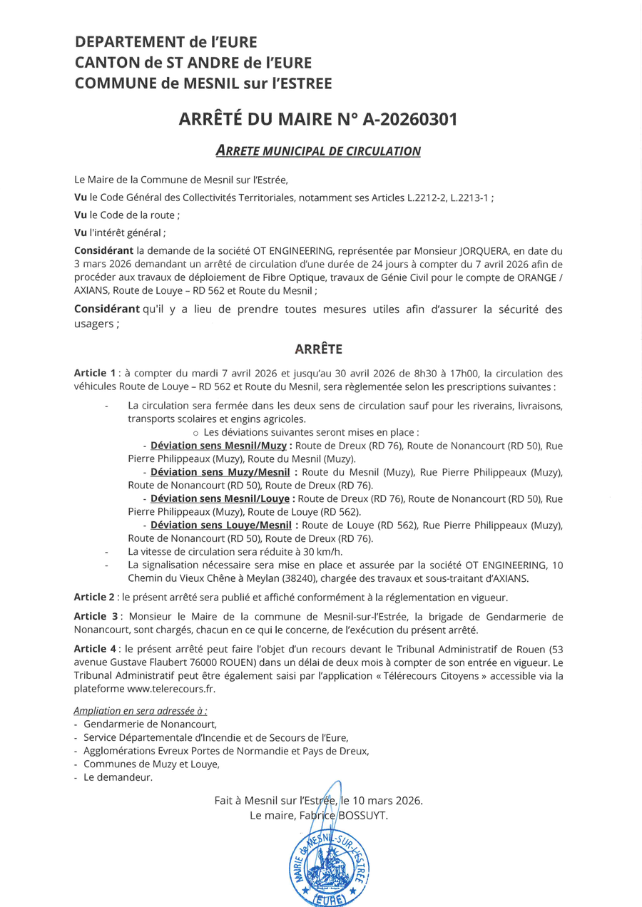 Cet arrêté a été publié sur le site de la préfecture de l'Eure :