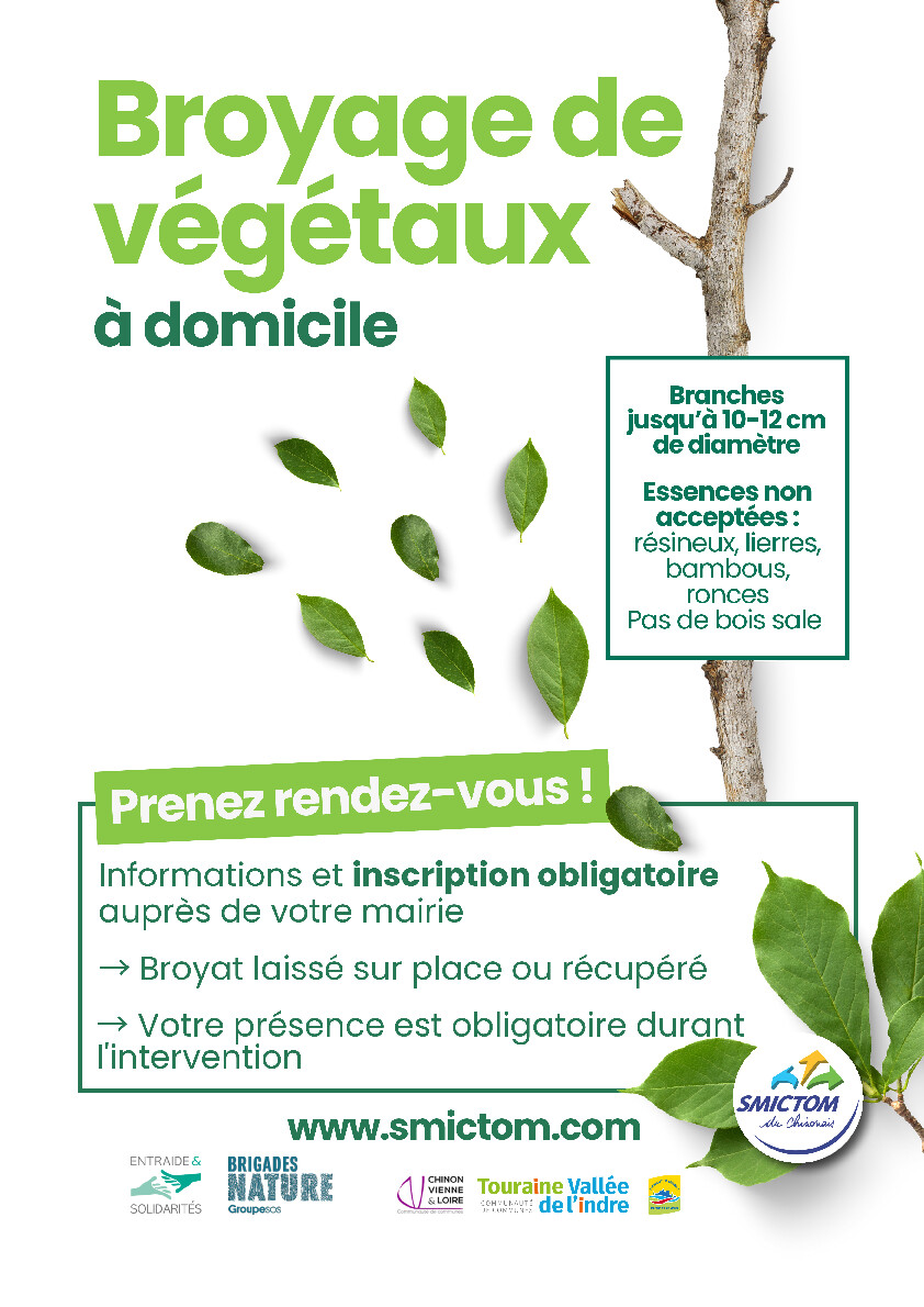 Dans le cadre de sa déclinaison locale du programme départemental de prévention des déchets ménagers et assimilés 2024-2030, le SMICTOM du Chinonais porte des actions en faveur de la réduction des végétaux et de la promotion du jardinage au naturel. A ce titre, une opération de broyage itinérant à destination des habitants du territoire pourront en bénéficier.