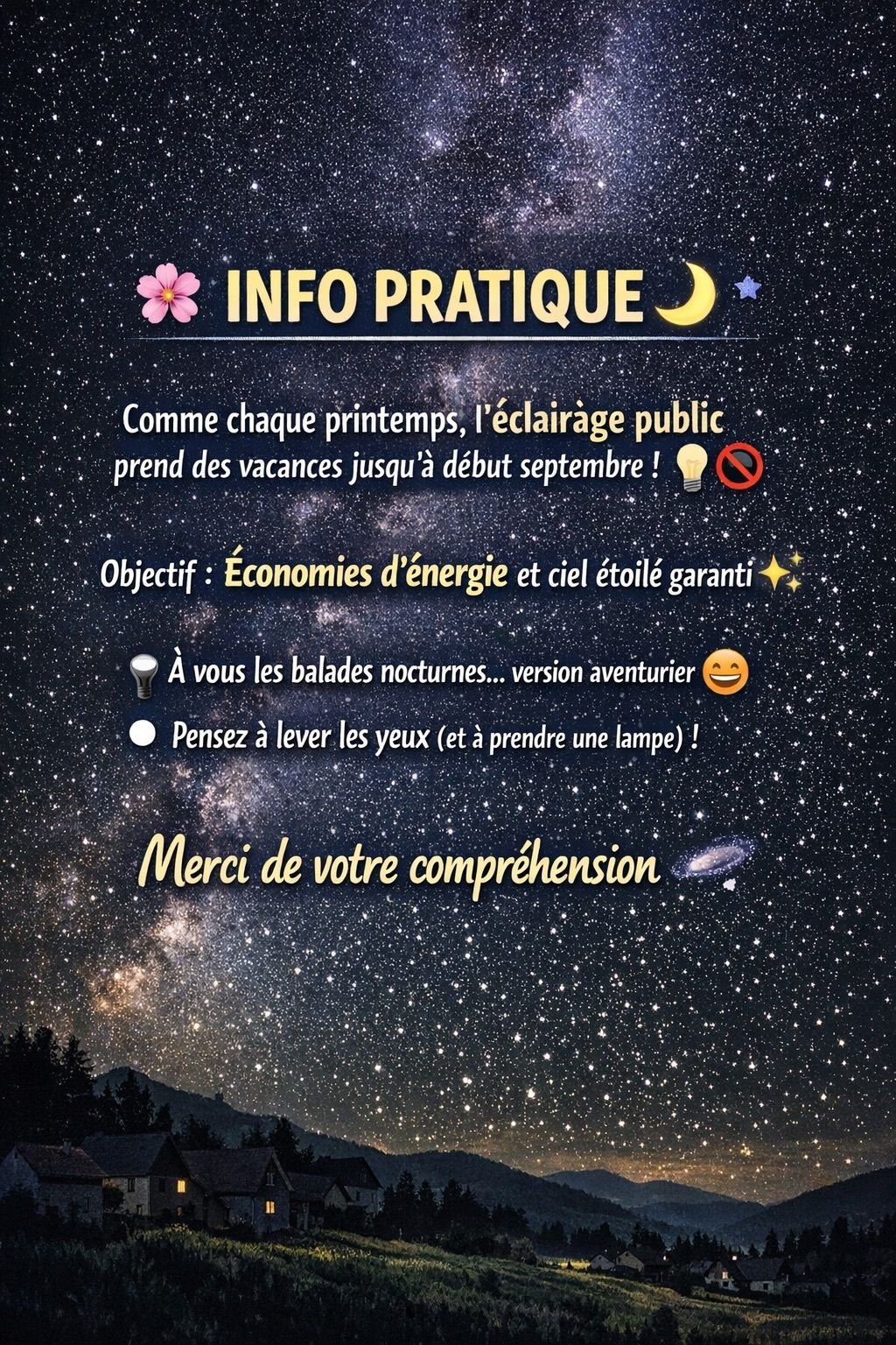 - Et parce que, soyons honnêtes, la Voie lactée est quand même plus sympa que le lampadaire du coin ! 😄