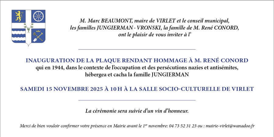 Le 15 novembre 2025 aura lieu la cérémonie de commémoration en l’honneur de M. René CONORD et sa famille, symbole de courage et de résistance durant la Seconde Guerre mondiale.