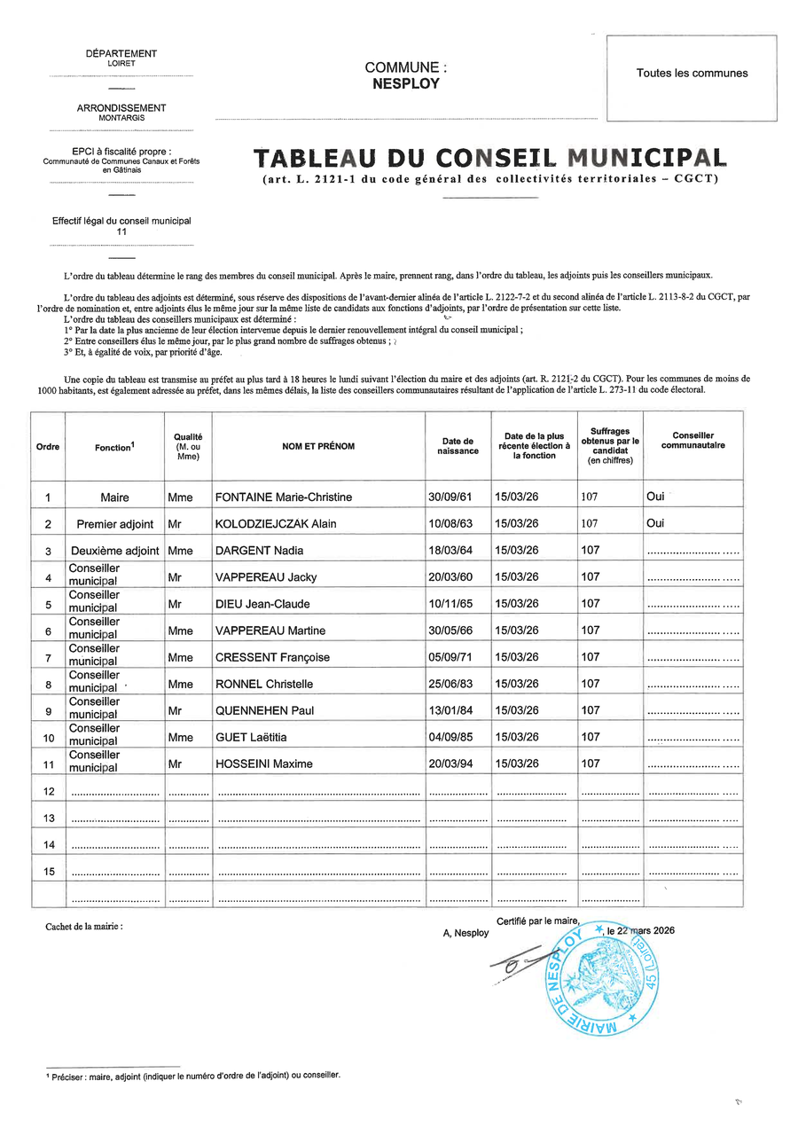 Installation du Conseil Municipal