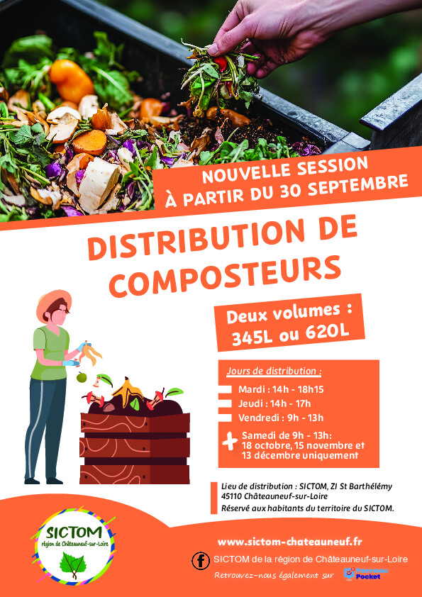 La distribution de composteurs reprend au SICTOM de la région de Châteauneuf-sur-Loire dès le Mardi 30 septembre 🎉 Et c’est gratuit !