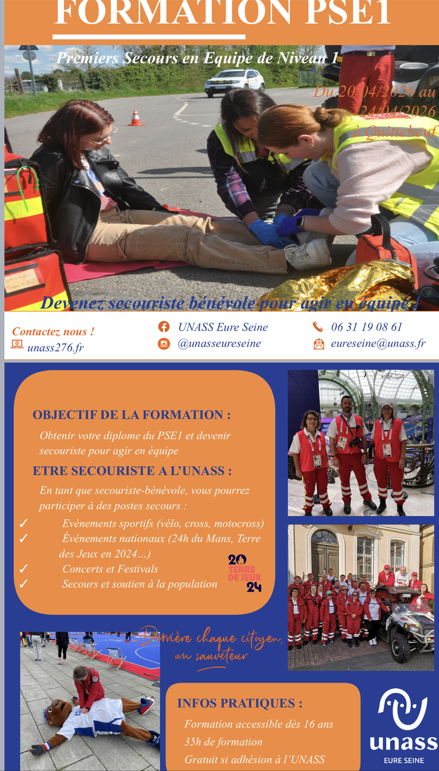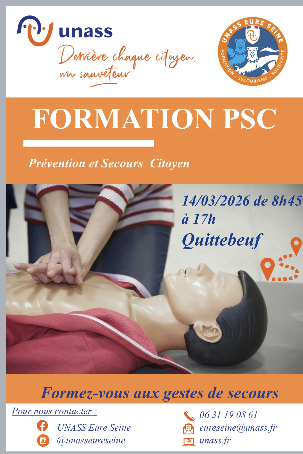 L’association UNASS Eure – Seine organise prochainement plusieurs formations citoyennes de premiers secours àQuittebeuf et souhaiterait bénéficier de votre aide pour la diffusion de ces informations.