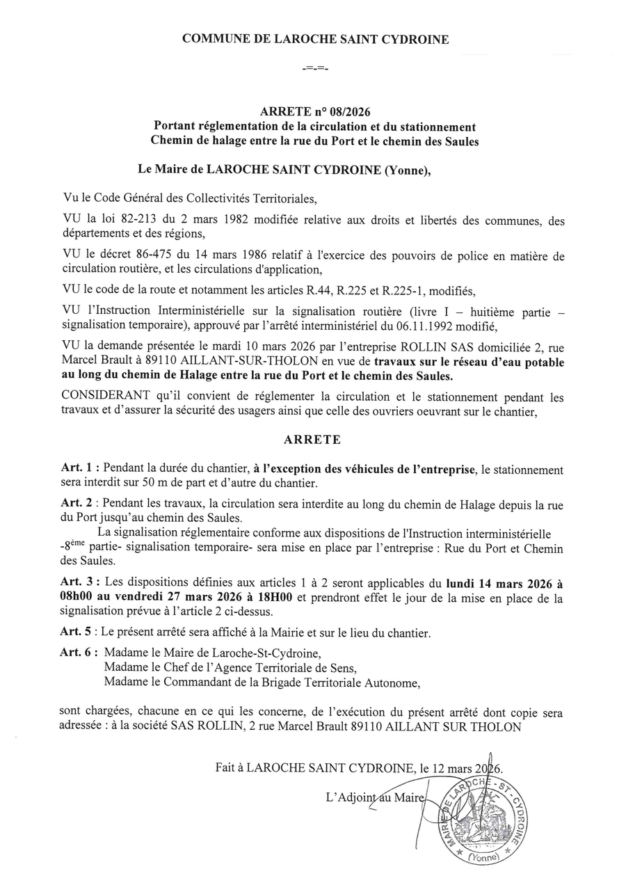1 Place du 19 Mars 1962 89400 Laroche-Saint-Cydroine