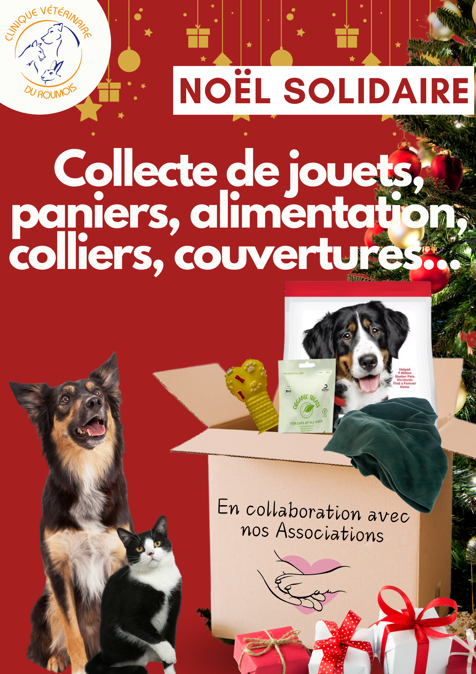 À l’occasion des fêtes de fin d’année, la Clinique Vétérinaire du Roumois avec la collaboration de leurs associations organise une collecte de dons pour les animaux de compagnie .