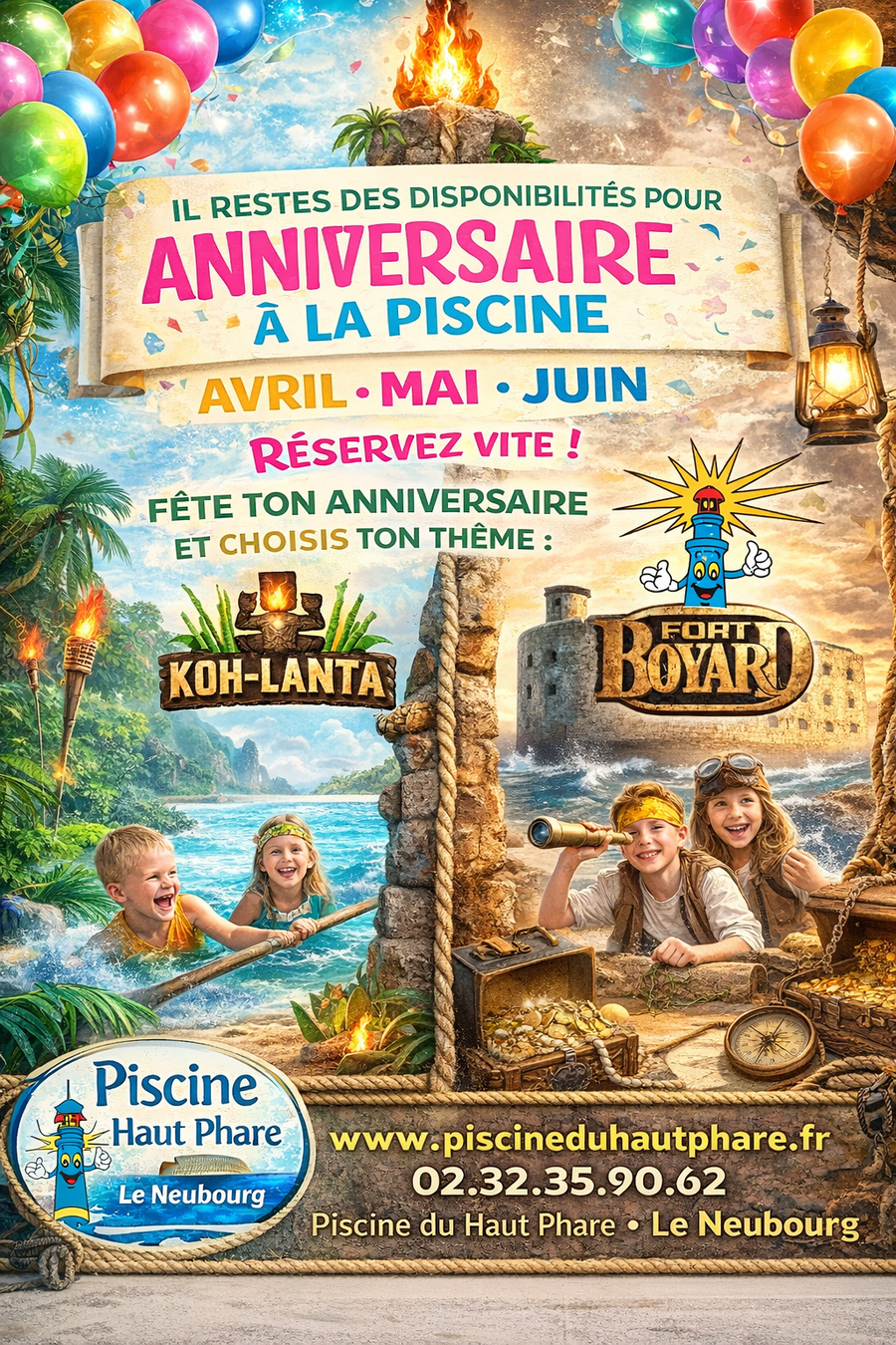 L’anniversaire sera encadré par vos soins sous la surveillance des maîtres-nageurs.